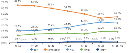2025年上期の日本の自動車市場における電動化動向を分析。HEVが33.8%のシェアを維持し販売台数も堅調な一方、BEVは1.3%に停滞。軽EVの市場規模、政府の補助金・税制優遇、価格帯の二極化を販売統計データで解説。日系メーカーの技術優位性と今後の展望も紹介。