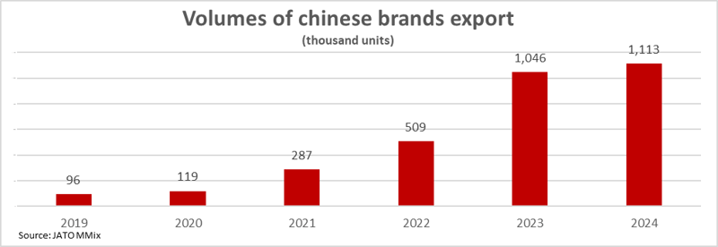 While Chinese brands have continued to expand their presence in the domestic market, they have also experienced exponential growth in exports between 2019 and 2024. This surge has been driven by rapidly increasing production capacity, which not only supports high volumes in the domestic market but also enables a strategic shift toward international opportunities.